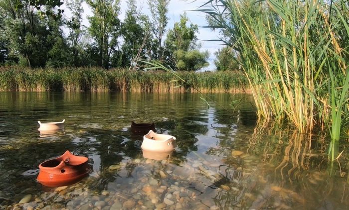 Višestoljetna tradicija iškog lončarstva dio je obiteljskog naslijeđa koji je Nika Petrović Grilc preuzela od svog oca i tako postala prva iška lopižarka njegujući tradicijsko lončarstvo otoka Iža koje je 2009. godine proglašeno za nematerijalno kulturno dobro Republike Hrvatske. Glina traži strpljenje i predanost dok istovremeno djeluje meditativno i pruža beskrajne mogućnosti oblikovanja i eksperimentiranja. Bilo da je riječ o klasičnom zanatskom pristupu na lončarskom kolu ili posve slobodnom ručnom oblikovanju, glina predstavlja kompleksan medij. Ona je živi organizam koji treba upoznati kako bi se mogao doseći njezin puni potencijal. Kroz direktan dodir s materijom Nika Petrović Grilc intuitivno upoznaje osobnosti gline i otkriva mogućnosti koje ona pruža. Oblikujući željene forme inspirirane prirodom autorica utkiva vlastitu energiju i emocije u završno djelo. Dovršene keramičke posude umjetnica vraća na ishodište – obalu rijeke Dunav gdje često crpi inspiraciju za svoj rad, ali i osjeća prirodnu povezanost s domovinom kroz rijeku koja protječe i spaja cijeli niz europskih država uključujući i Hrvatsku. Dunav u svojoj punini i snazi odražava stvaralačku silu prirode i vremena, a simbolički označava plodnost i navodnjavanje tla dajući život svojim obalama. Upravo raznolikost njegovih obala Nika Petrović Grilc bilježi u svom video radu Danubius odabirući lokacije poput travnate ili stjenovite obale pa sve do starog stabla koje se nadvilo nad rijekom. Sve su to elementi prirode iz kojih umjetnica crpi inspiraciju za oblikovanje vlastitih radova, a dodatno ih obogaćuje izmjena vremenskih prilika poput refleksije sunčeve svjetlosti na površini rijeke, zvuk i utjecaj vjetra koji uglačanu površinu vode čini namreškanom, te popratni zvukovi kukaca i ptica čije prirodno stanište čine upravo obale Dunava. Bogatstvo mirisa, okusa i ostalih osjetilnih podražaja u potpunosti se transformira kada umjetnica dolazi u doticaj s rijekom što otvara posve novi spektar doživljaja poput zvuka uranjanja keramičkih posuda u rijeku, izlijevanja vode iz posude u posudu te začudnog zvuka dodira keramike sa šljunčanim dnom. Mijenjaju se i vizure pa tako bistrina pogleda iznad površine vode biva zamućena i ispunjena nizom lebdećih čestica koje čine prirodno podvodno okruženje u plićaku rijeke. Umjetnica stavljanjem jedne posude u drugu ukazuje na povezanost rijeke s obalom kroz prirodne elemente korištene u izradi posuda – zemlje i vode. Uz plutajuće posude, vlastitim ulaskom u rijeku Nika Petrović Grilc prepušta se osjećaju direktne povezanosti s prirodnim okruženjem, a posredno i s domovinom. U konačnici, kako sama kaže, “puštanjem jedne glinene posude da ju odnese vodeni tok Dunava izražavam svoje misli, osjećaje, a ponekad i čežnju za domom”.