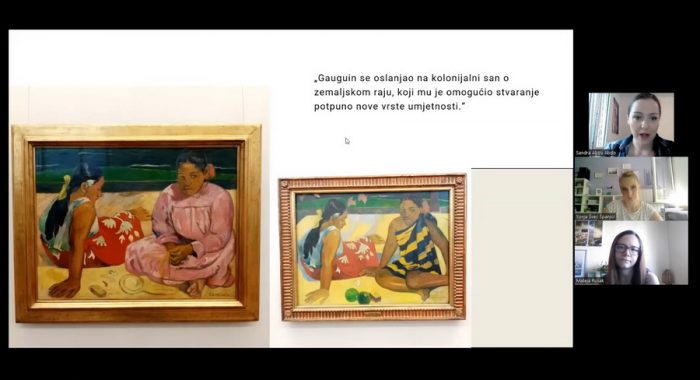 Sandra Abou Abdo je u svom izlaganju predstavila mit o divljem umjetniku koji je stvorio Paul Gauguin s naglaskom na suvremenu umjetnost i koncept izložbe, a polazišna točka je aktualna izložba u berlinskoj Nacionalnoj galeriji pod nazivom: “Zašto si ljut?” koja traje sve do 10. srpnja 2022.