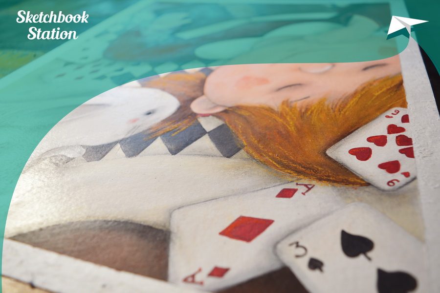 U svom radu za Sketchbook Station Dóra Pernyész htjela je ilustrirati svima dobro poznatu priču, te je odabrala knjigu engleskog književnika Charlesa Lutwidgea Dodgsona “Alisa u zemlji čudesa”. Dóra je kao dijete obožavala ovu maštovitu knjigu o doživljajima djevojčice Alise koja pada niz zečju rupu u fantastični svijet naseljen osebujnim stvorenjima, te je došla na ideju da cijelu priču sumira u jedan crtež. Često sanjamo nešto što smo doživjeli tijekom dana ili vidjeli prije spavanja, pa je Dóra Alisu smjestila na crno-bijeli tepih gdje se igra s kartama i sa svojim zecom, a prije nego je zaspala, Alisa je pročitala jednu zanimljivu priču. Poruku Dórinog rada možemo interpretirati kao: slika je samo san – polazište, a naša mašta nas može odvesti bilo kuda.