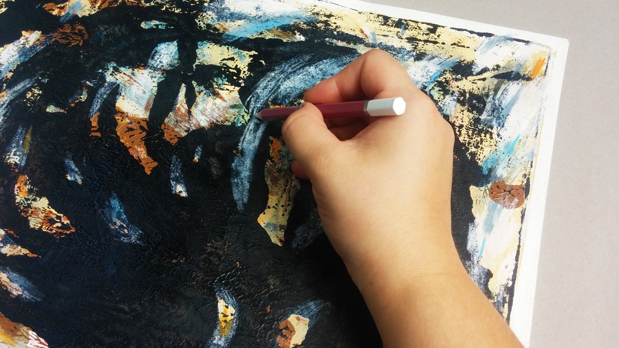 Rad “Space Between Us” koji je doprinos Ivane Rod u Sketchbook Station mapi obiluje karakterističnim slojevima, preklapanjima i pretapanjima. Mrlja i linija osnovni su gradivni elementi, dok višeslojna, sadržajno i ritmički bogata kompozicija uvodi promatrača u svijet ekspresije i granične nepredmetnosti. Energične linije na pojedinim mjestima pretvaraju se u mrlje, a svijetli uplivi boje prkose dominantnom crnilu. Detaljnim opisom konstruktivnih elemenata nastojali smo vas potaknuti na vizualizaciju samog djela, no da biste od umjetnice čuli nešto više o samoj temi rada morat ćete pričekati do otvorenja izložbe.