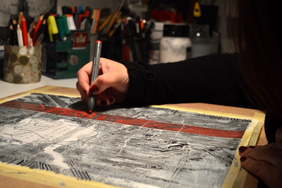 Inspirirana glazbom, filmovima i ljudima koji je okružuju, Marija Lovrić stvara u različitim tehnikama, a trenutno je posvećena mediju crteža. Kombinirajući različite tehnike poput kolaža, markera, rapidografa, olovke i akrila, umjetnica postiže zanimljive rezultate, a tijekom samog rada dolazi do novih ideja. Zaintrigirana procesom socijalizacije i društvenih odnosa, te enormnog razvoja tehnologije i njezinog utjecaja na ljudski život, posebice u polju razvoja mogućnosti komunikacije, Marija stvara radove koji prezentiraju njezine misli, probleme i situacije, moguća rješenja i uzroke, kao i međuljudske odnose.