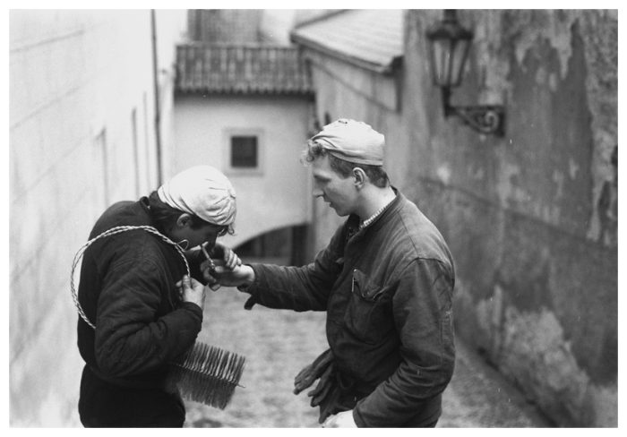 Socijalna osviještenost autora prepoznaje se kroz odabir običnih ljudi za glavne likove na fotografiji, bilo da je riječ o dimnjačaru, čistačici ili uličnim sviračima. Posebice je zanimljiva kompozicija starijeg muškarca koji proviruje kroz ulazna vrata. Strukturu prikaza definira neobična linija stabla koja prati dovratnik, te uokviruje vrata iznad kojih se razvija u bogatu krošnju poput krune nad ulazom.