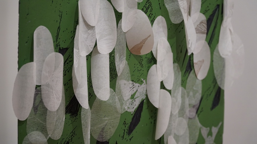 Kao posve novi segment rada javlja se motiv dudovog svilca s naglaskom na njegov čudesni ciklus metamorfoze. Matrice linoreza vise u prostoru dok na njih umjetnica aplicira izrezane oblike kukuljica dudovog svilca na koje s vremenom otiskuje i leptire izrezbarene u linoleumu odnosno linorezu. Na pojedinim matricama pronalazimo elemente zelene i bijele grafičke boje koje doprinose dojmu prirodnog okruženja dudovog svilca – stabla murve. Kukuljice iz svijeta prirode metafora su linoreza u umjetničkom svijetu. Oboje predstavljaju područje inkubacije novih ideja odnosno transformacije novog života. Jajoliki oblici kukuljica dudovog svilca grupirani su i na središnjem zidu galerije. Sunčana Simichen kukuljice izrađuje od finog transparentnog kineskog papira utkivajući tako u svoj rad korijene nastanka prvog papira u drevnoj Kini.
