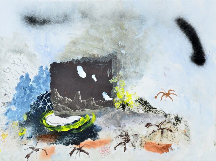 Suptilno tonsko nijansiranje sivoplavičastih tonova proizašlih iz crnog masiva dinamizirano je žutim akcentima, dok su srebrni i zlatni namazi, vidljivi samo iz određenog kuta gledanja, direktan doprinos stvaranju fantastične atmosfere neistraženog planeta. Čitav niz vizualnih senzacija na površini platna – materična, reflektirajuća, koloristička – stvaraju nadrealnu atmosferu boravka na imaginarnom planetu gdje se život kakvog danas poznajemo tek treba pojaviti ili je već odavno nestao. Svijet je to jednostavnih oblika života kojeg ispunjavaju plinovi, pare, izmaglice, vjetrovi i kiše.