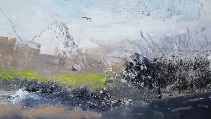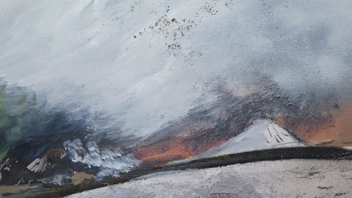 Beskonačnost svemira odnosno njegova prostorna i vremenska nemjerljivost dočarana je otvorenom kompozicijom. ‘Kadar koji traje’ nije zatvoren na bočnim stranama već izmaglice, oblaci i kiše kao da prolaze kroz interpretiranu vizuru i nastavljaju svoj put dalje. Jednostavan dječji prikaz pauka posve slobodno ispunjava površinu platna, dok kod pojedinih motiva slikovni izraz ne prati prikaz fotografskog isječka, već autorica slobodnom interpretacijom dovršava naznačeni oblik. Uz planine i paukove kao lajtmotiv javljaju se elipsoidne forme koje na pojedinim slikama čine nastavak fotografskih pješčanih dina, na drugima asociraju na godove stabla, dok na trećima djeluju poput neidentificiranih letećih objekata.
