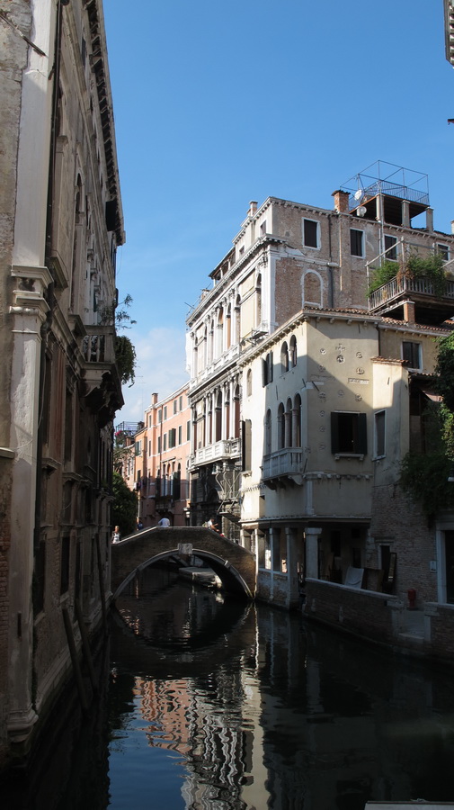 Nakon trga sv. Marka krenuli smo prema mostu Rialto koji je sagrađen kako bi se premostio Canal Grande u dijelu grada koji je bio glavna poslovna četvrt. To je jedini most koji ima luk sa rasponom od 48 metara, a visina od 7,5 metara omogućavala je prolaz galija ispod mosta. Osobno mi je divan uspon uz dekorativnu balustradu koja stvara dojam kao da se uspinješ reprezentativnim stepeništem u nekoj renesansnoj palači. Pogled s mosta na kanal Grande je fenomenalan, samo što stalna gužva onemogućava fotografiranje na mostu, no što drugo očekivati u gradu kojeg godišnje posjeti od 19 do 21 milijun posjetitelja (prema statistikama na internetu). Zanimljivost vezana uz most kaže da je od 1591. godine, kada je izgrađen, pa sve do 1854. godine, kada je podignut most Accademia, Rialto bio jedini pješački prijelaz preko kanala Grande.