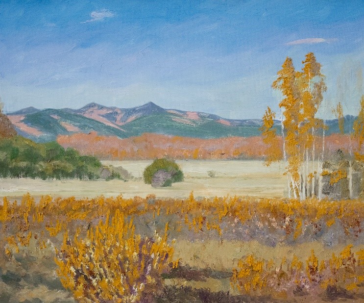 Motivi Ivolge, Orongoja i Sotnikova u zlaćanim nijansama jesenskog pejzaža svjedoče o toplini i emocijama koje autorica osjeća prema ovom području. Naglašeno horizontalne kompozicije prirode često ponavljaju ritam polja u prvom, šume u drugom, te udaljenih planina u trećem planu. Većinom je riječ o pejzažima bez prisustva čovjeka, osim primjera poput slike Dvorište u Kučigeru gdje izraženi kolorit toplih nijansi dječaka i drvarnice ostvaruje ravnotežu u kontrastu s dinamikom modrog neba i tamnoplavih planina u pozadini.