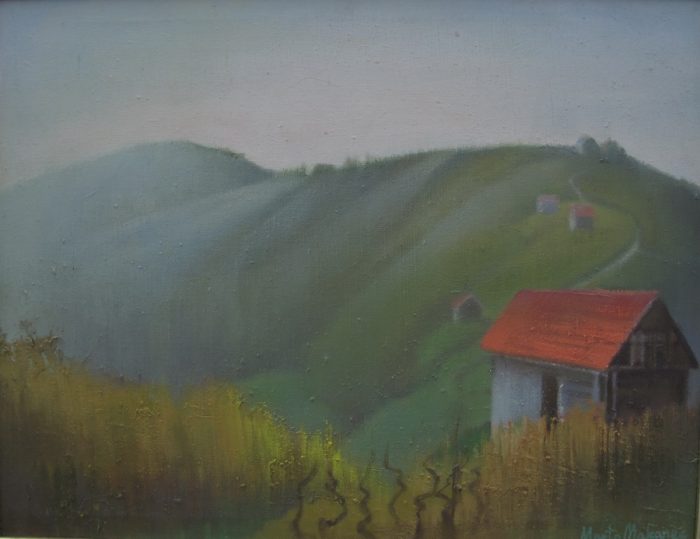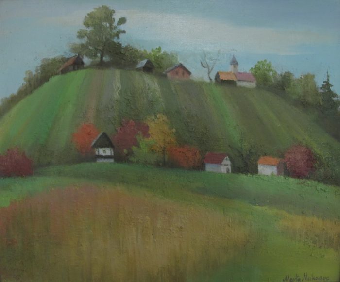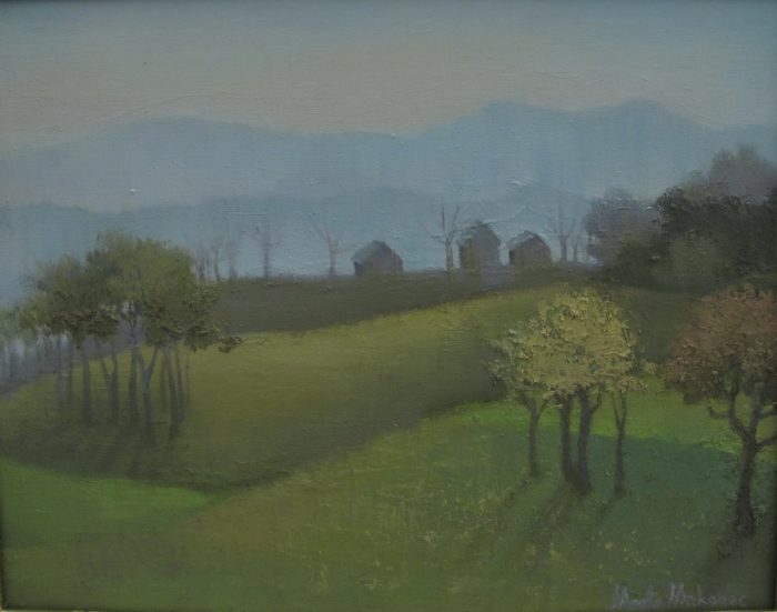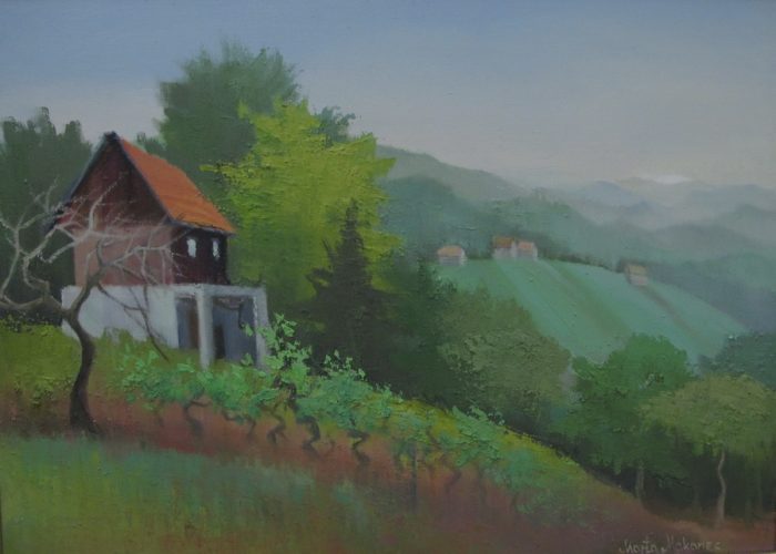 Dok centralni i najveći dio izložbenog prostora zauzimaju djela s temom Jadrana, u bočnim prostorijama smještene su cjeline Zagreba i Hrvatskog zagorja. Prešavši s morskih pejzaža u područje živopisnih zagorskih brega osjeti se bitna razlika u ozračju radova. Dominantno modre tonove kontemplativnih otočnih pejzaža zamijenile su vesele i razigrane kompozicije toplih jesenskih i ljetnih kolorita zagorskih predjela. Brežuljci, vinogradi i kuće svjedoče o aktivnom životu mještana u skladu s prirodom koja ih okružuje. Prevladavajući topli tonovi jesenskih motiva unose ritmičnost i razigranost u zeleni tepih zagorskih brega. Monotoniju zelenila razbijaju i šarene kućice, koje su kao i na primorskim radovima slikane s poprilične udaljenosti. Magloviti prizori, poput djela Kasna jesen, pružaju dojam spokoja i mirnoće, te pripreme za hladnu i dugu zimu. Stablo gubi ulogu snažnog individualnog objekta slike i preuzima funkciju ritmičnih ponavljajućih motiva.