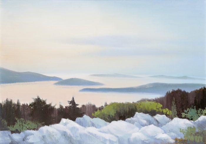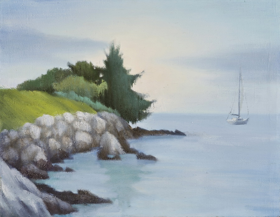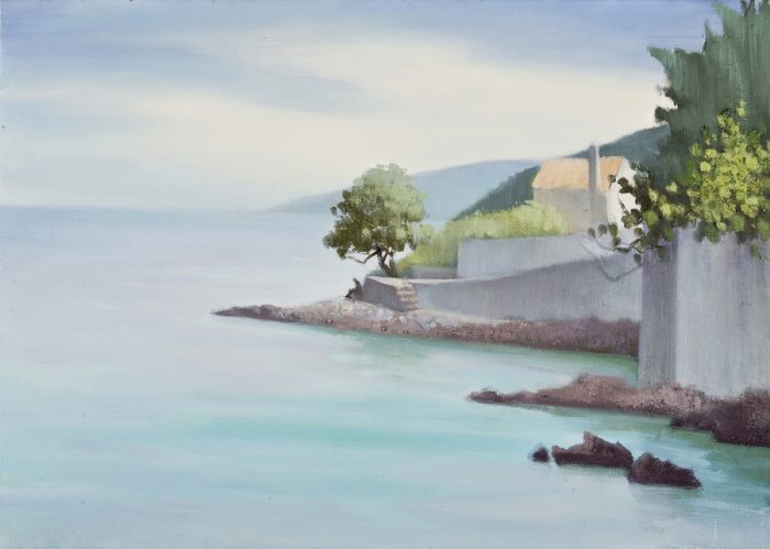 Izložba započinje motivima otoka Ilovika na kojem autorica crpi inspiraciju za ciklus kontemplativnih smirujućih kompozicija. Profinjen duktus i suptilna tonska paleta stvaraju idiličnu atmosferu morskih pejzaža. Otok prekriven mediteranskom vegetacijom, bogat rimskim ostacima, ruševinama i mirnim uvalama s brodicama pruža neiscrpno vrelo slikarskih motiva.