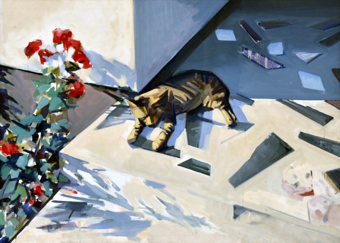 Na ovaj ciklus možemo nadovezati rad “Pogled kroz prozor” iz 2000. godine koji je vizualizacija poratne situacije u gradu. U fokusu je simbolika prozora s dominantnom plavom bojom, dok različiti formati stakla u raznolikim položajima stvaraju igru svjetla i sjene pri čemu oblikuju kolaž asocijacija. Niz oštrih krhotina stakla koja su se rasprsnula i nemoguće ih je ponovno posložiti ilustriraju prisutne emocije. Kako zacijeliti i kako se vratiti u svakodnevnicu nakon proživljene traume ako kroz prozor i dalje vidimo tragove rata?