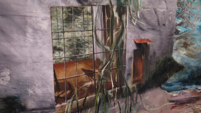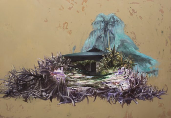 Susjedno platno primjer je puno prirodnije uklopljene drvene kuće u divlji tropski okoliš, dok crna rupa definira ulaz ostavljajući enigmom pruža li građevina doista utočište ili sigurnu zonu koja nam ne dopušta daljnji razvoj i promišljanja, te nas ograničava unutar poznatog svijeta.