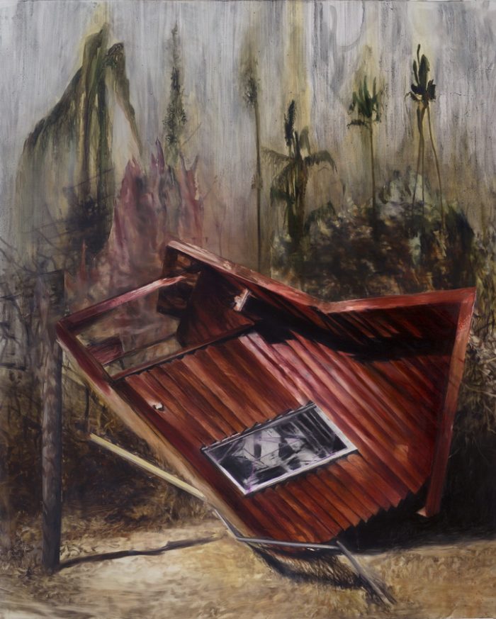 Predstavljeni radovi izgledaju kao područja poharana uraganom, požarom ili nekom drugom klimatskom nepogodom, dok sklonište ostaje cijelo, tek okrhnuto ili prevrnuto. Istovremeno, nastambe više djeluju poput praznih ljuštura ili privida skloništa negoli pravog utočišta koje može očuvati ključne nematerijalne vrijednosti. Kompozicije više nisu realistični koncepti, već kombinacija realnog i zamišljenog, preciznog i slobodno oblikovanog, te fokusiranog na središnje zbivanje ili objekt, dok divlji i neukroćeni okoliš simbolizira neizvjesnost, a prazno platno u kutovima dodatno naglašava središte slike i razbija iluziju savršeno koncipiranog realističnog narativa. Raspad čvrste konstrukcije i stabilnih volumena odvija se ne samo slikarski već i kompozicijski i tematski.